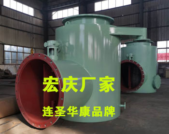 4、分匯器是一個(gè)三通閥,通過(guò)導(dǎo)向板的切換可使膠球進(jìn)入需要清洗的一側(cè)凝汽器中工作。一般一臺(tái)機(jī)組需兩臺(tái)分匯器,其進(jìn)口通徑為DN100,分配口為DN89,膠球投用時(shí)可通過(guò)窺視窗觀(guān)察運(yùn)行情況。FH型分匯器(清潔海綿膠球切換三通管閥)